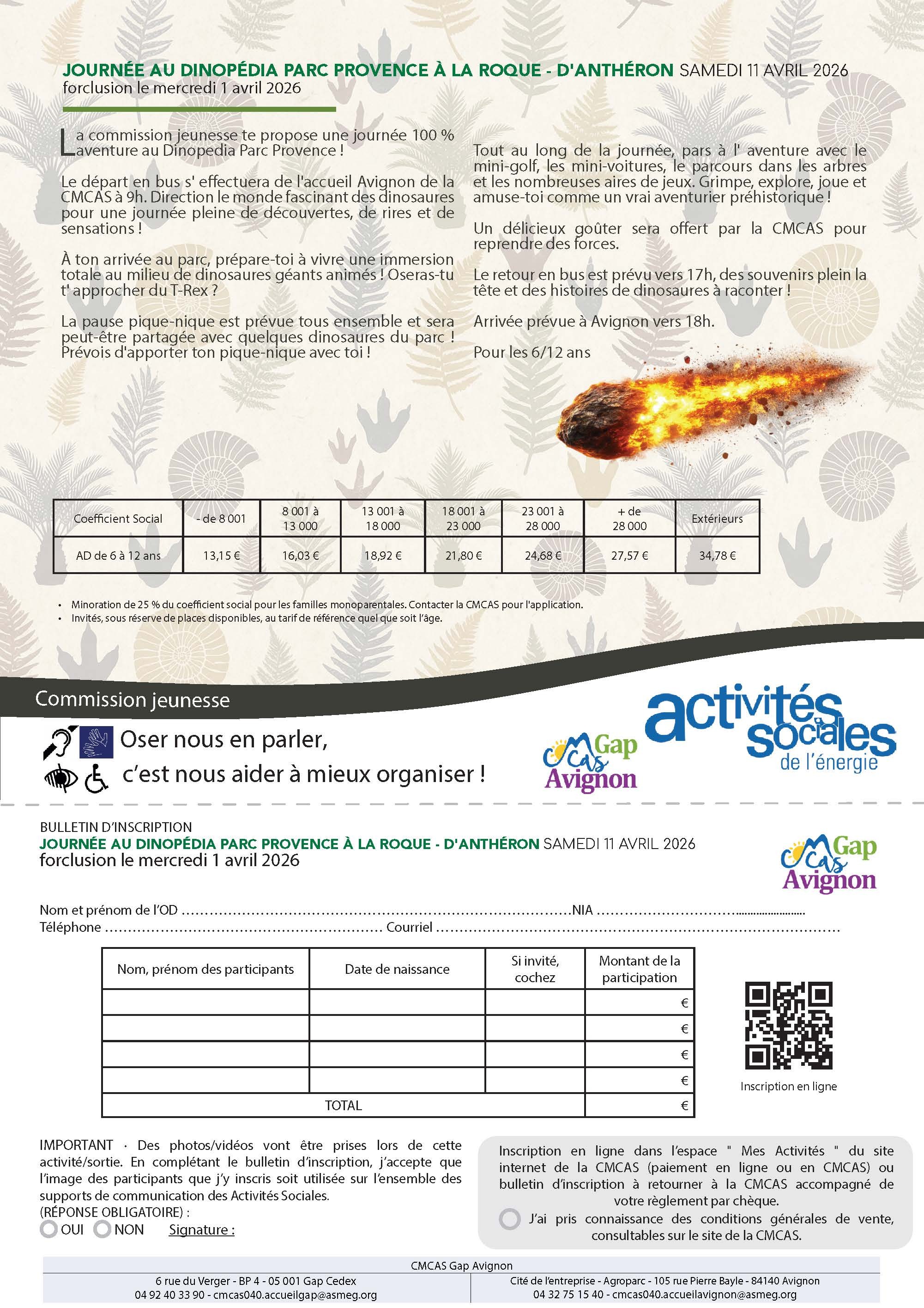 Le départ en bus s' effectuera de l'accueil Avignon de la CMCAS à 9h. Direction le monde fascinant des dinosaures
